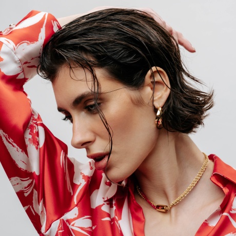 The selection of earrings designed by Giulia Salemi for Breil includes an S-shaped model, a single earring, the tris, and a fringed pendant model, all made of gold steel