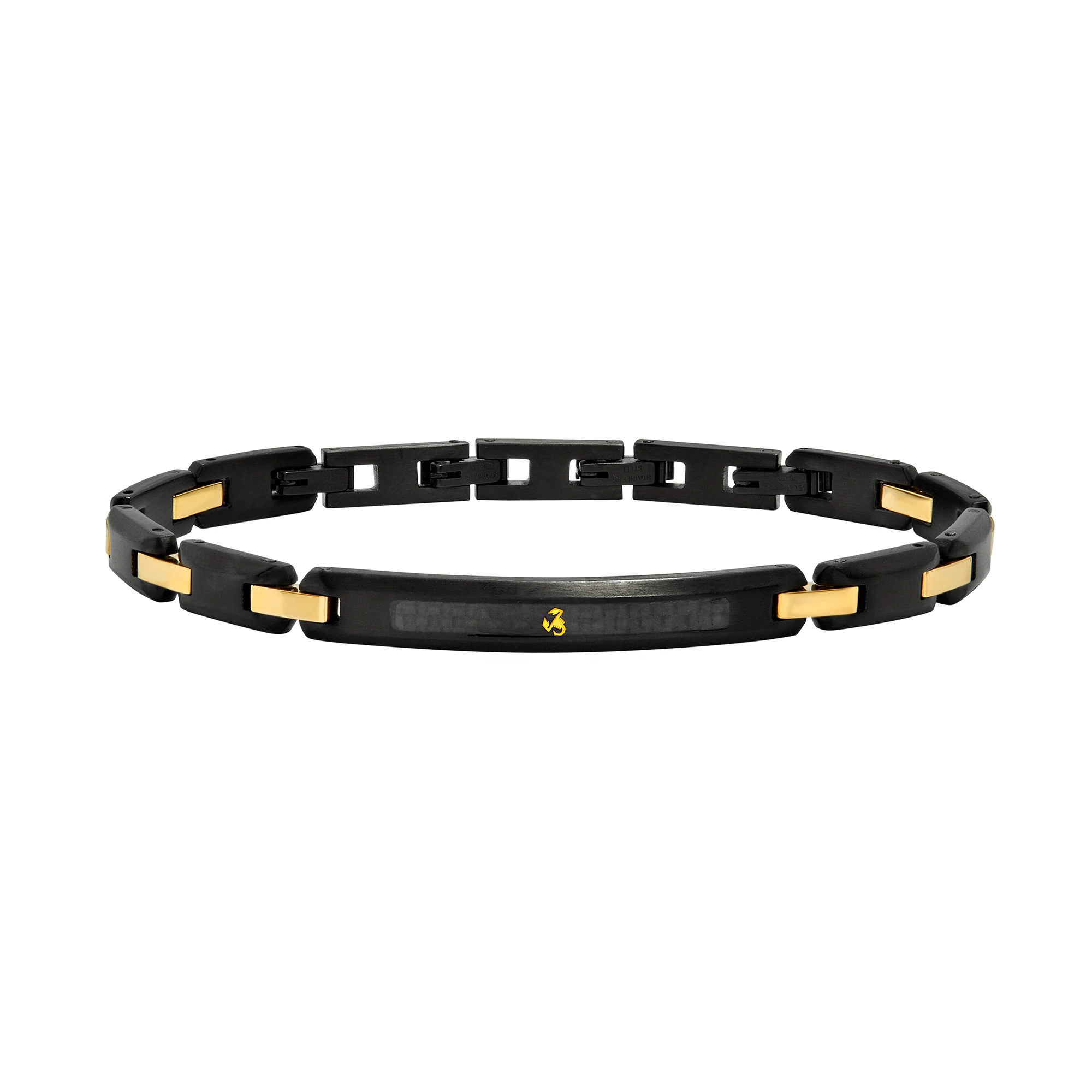 The bracelet from the Abarth collection, in black steel with a satin finish, features a bold chain. At the centre, a carbon fibre element houses the legendary Abarth scorpion logo in a gold finish, giving the bracelet a bold and distinctive look.