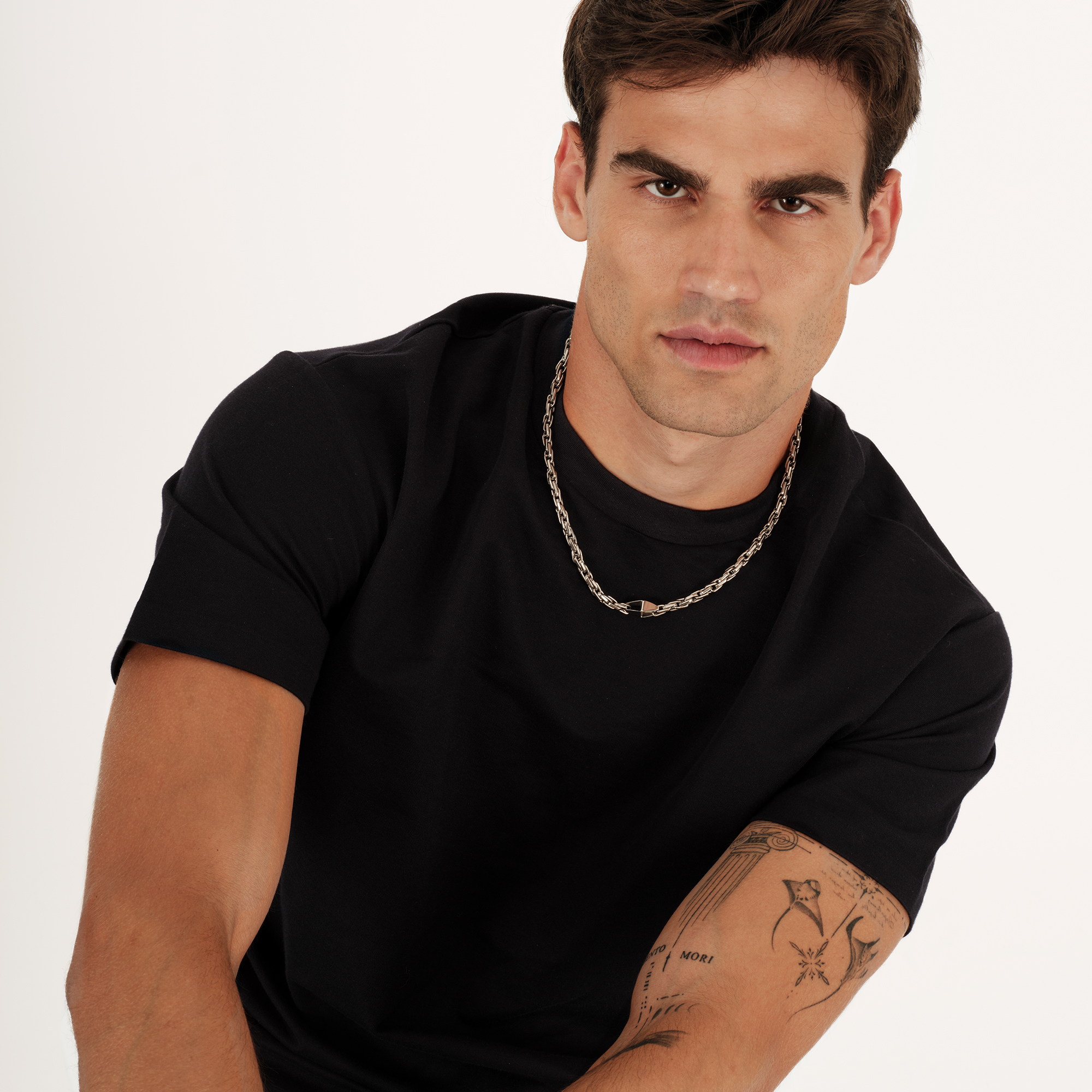 The iconic Hypnotic collection is now also available in a men's version. The necklace captivates with its modern and bold design: the steel chain recalls the texture of snakeskin, while the central element evokes the shape of its head, a symbol of strength and timeless charm. The lobster clasp allows you to easily adjust the length for a look that is always tailored to you.