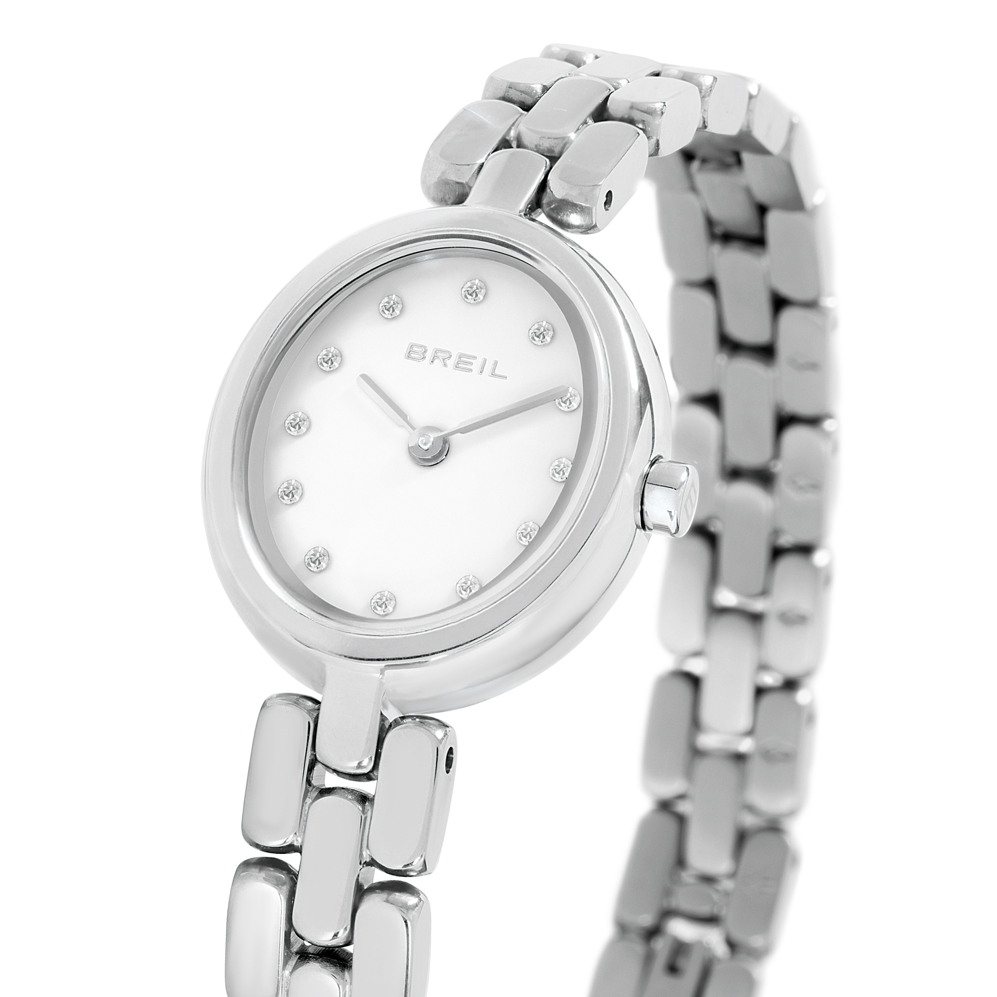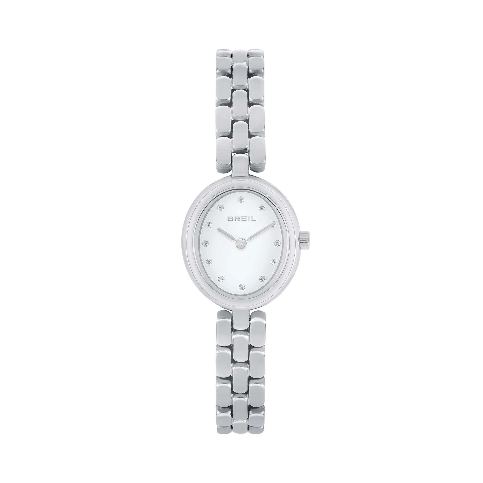 The Eclat women's time-only watch is much more than an accessory, it is a true jewel to be worn every day. The polished steel bracelet elegantly hugs the wrist, while the case houses a bright white dial embellished with crystal hour markers. The silver hands add a sophisticated touch, ensuring maximum readability. Wear it with a monochrome total look to enhance its brightness, or wear it with an oversized look for a refined and contemporary contrast.