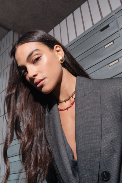 Magnetica System è la collezione di gioielli che, grazie ai suoi diversi elementi e alle chiusure magnetiche, può essere modificata e assumere forme e stili sempre diversi. Il girocollo Red Carpet è composto da due catene in agata rossa, arricchite da micro sfere in acciaio color oro e da 7 charms in agata nera. Può essere indossato da solo o abbinato ad ogni altro elemento della collezione, per creare nuove collane di diverse lunghezze.