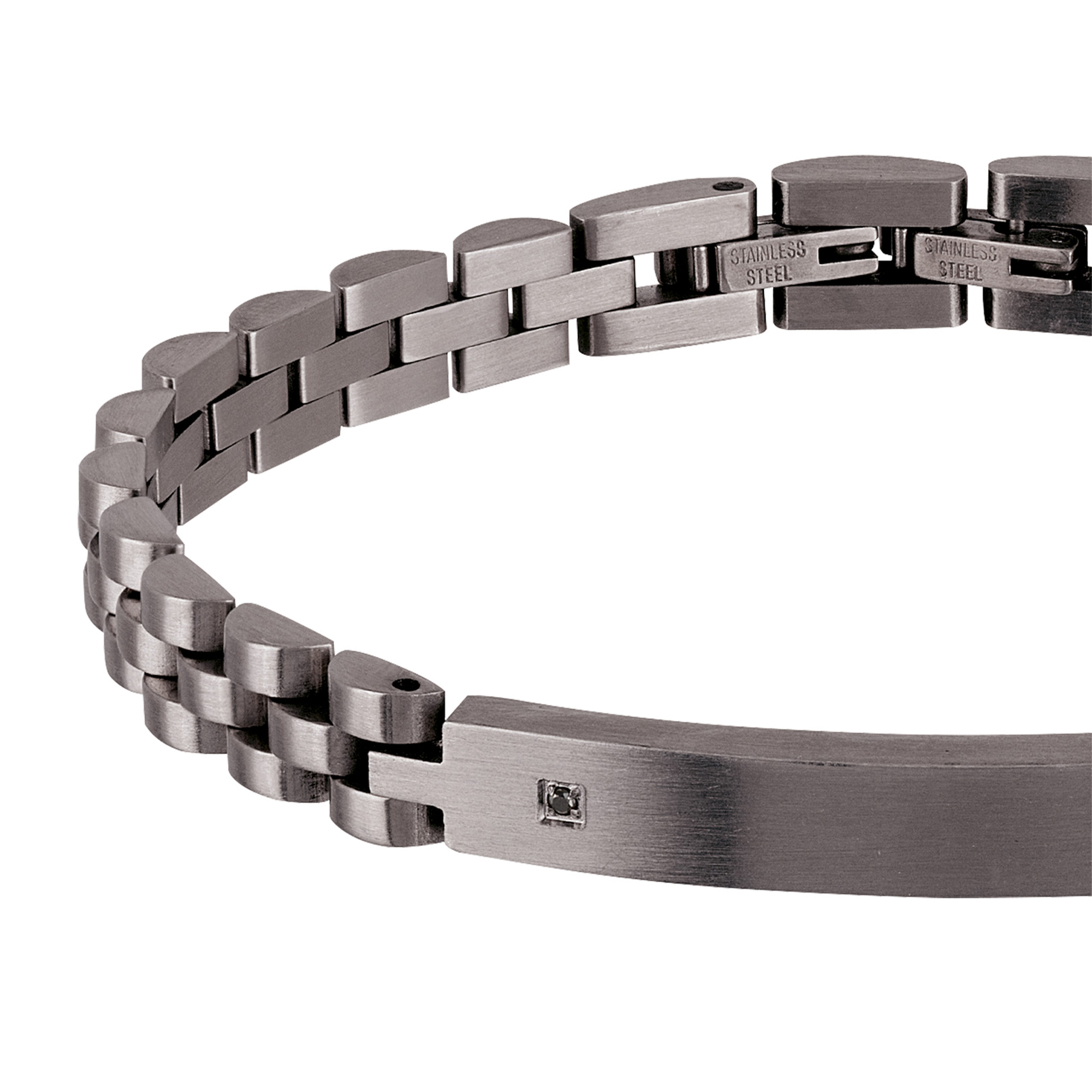 Bracciale maschile in acciaio IP gun con piccolo diamante naturale nero incastonato. Prezioso e contemporaneo al tempo stesso.