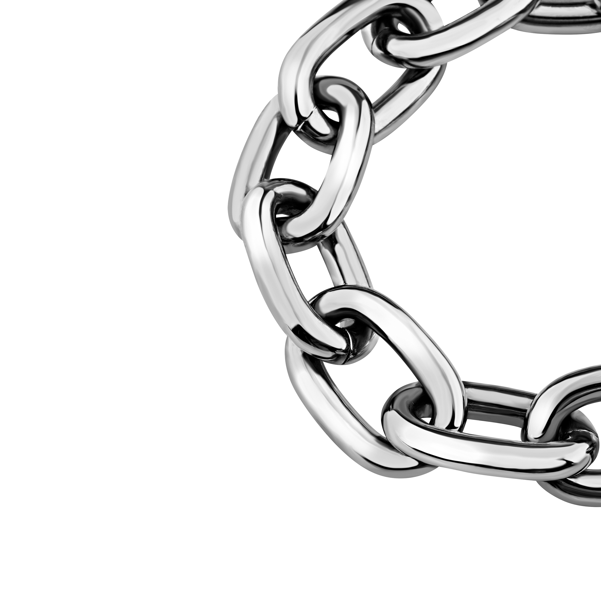 Il bracciale a catena Distinctive in alluminio lucido è caratterizzato da maglie ovali ed è completato da una chiusura in acciaio gold che crea un elegante contrasto cromatico. Un accessorio versatile, perfetto per essere indossato da solo come bracciale statement, capace di dare carattere anche ai look più minimal, oppure abbinato alla versione gold della stessa collezione per trasformarsi in una collana.