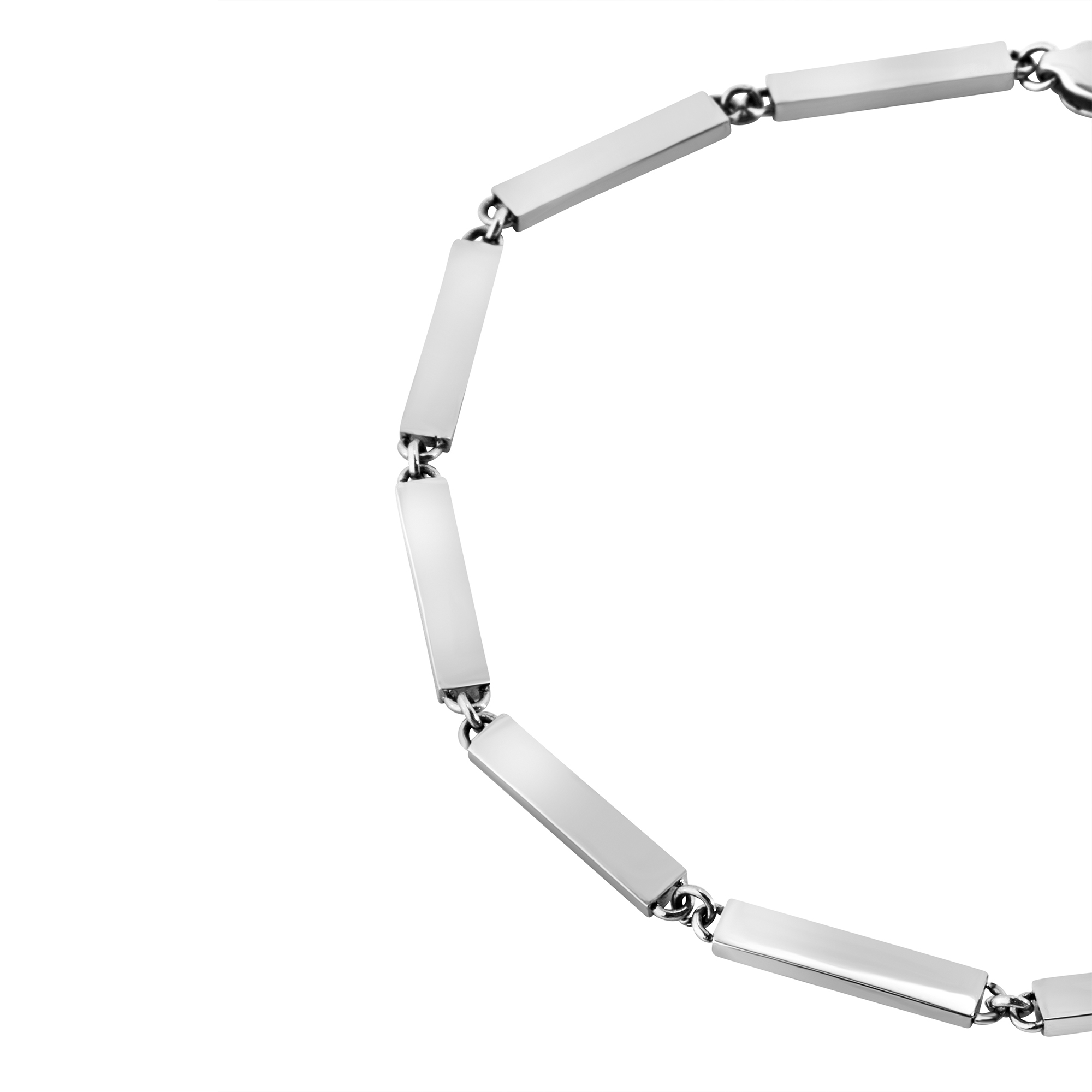 Il bracciale da uomo Edge of Light si distingue per la catena in acciaio lucido con maglie rettangolari e sottili, pensate per catturare e riflettere la luce a ogni movimento. La chiusura a moschettone permette di regolare facilmente la lunghezza, adattandola al proprio stile.