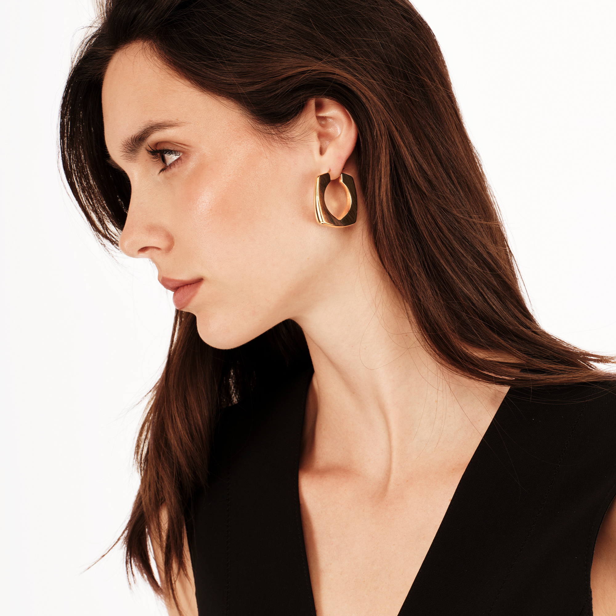 Le forme iconiche di Tetra, forma squadrata e forma tonda con goccia, assumono volumi bold intrecciandosi tra di loro. Gli orecchini Tetra Goes Big, in acciaio lucido gold, giocano con le forme: un orecchino presenta un design quadrato con apertura tonda, mentre l’altro orecchino presenta un design tondo con apertura quadrata. Indossali con i capelli raccolti per farli diventare i veri protagonisti del tuo look, illuminano il viso aggiungendo attitude.