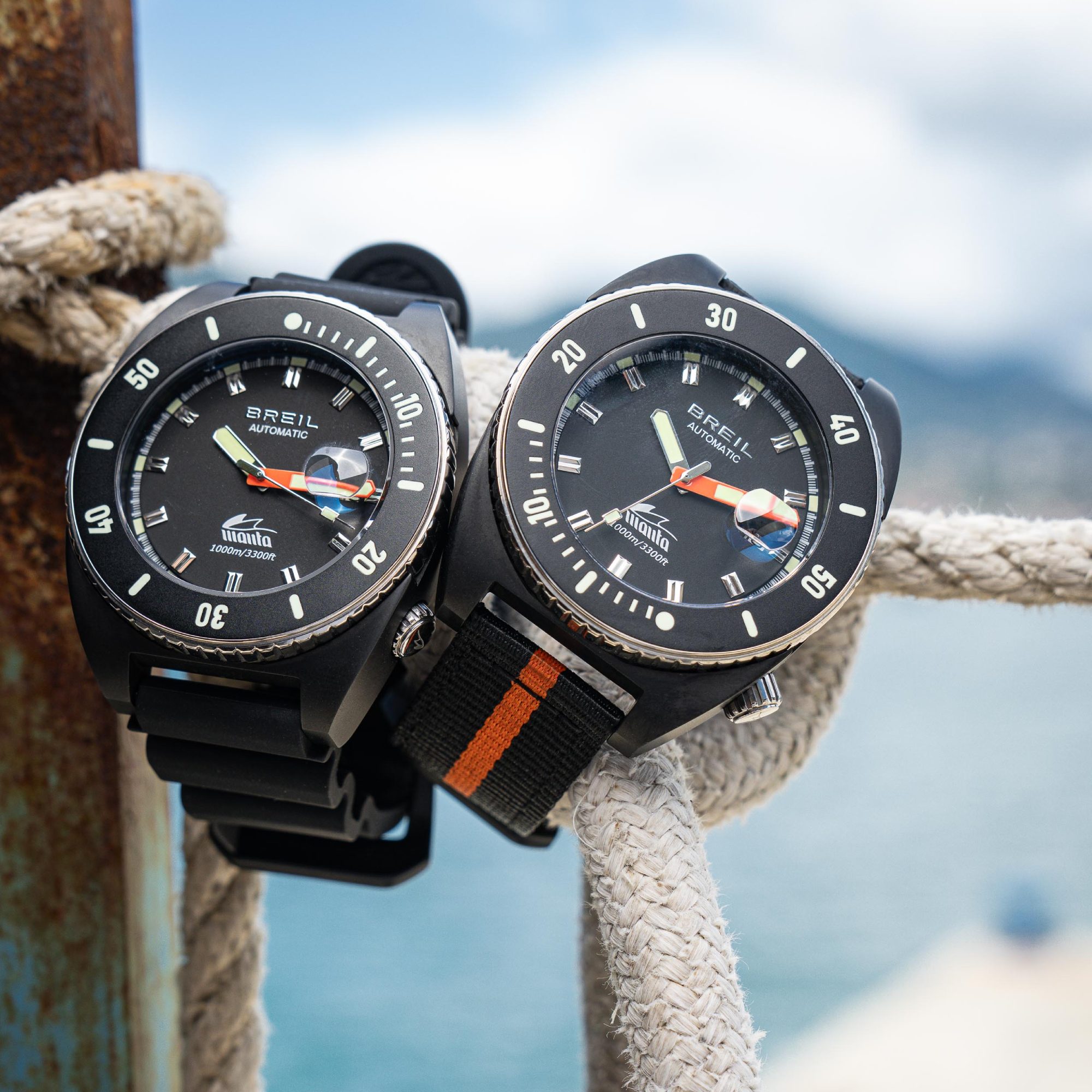 Breil lancia il primo Manta nel 1970 per affrontare le sfide delle missioni sottomarine. Oggi, questo iconico modello torna con il Manta Diver Automatic 1000m, un nuovo Diver in titanio, disponibile in un’esclusiva edizione numerata e limitata di soli 424 esemplari. Progettato per gli esploratori del mare, il Manta Diver automatic 1000 è dotato di un cinturino in PU nero, con tecnologia NFC che ne garantisce l’autenticità. La cassa in titanio nero ospita un sofisticato quadrante a doppio livello, dove gli indici applicati con trattamento luminous garantiscono massima leggibilità. La lunetta zigrinata in acciaio, girevole unidirezionale, presenta un disco in alluminio anodizzato, mentre la sfera dei minuti in arancione aggiunge un dettaglio distintivo e funzionale. Movimento automatico Miyota 9015, corona a vite in titanio a ore quattro e un’impermeabilità fino a 1000 metri fanno di questo orologio lo strumento ideale per i professionisti del mare. Robusto e affidabile per le immersioni più estreme, ma con un design che lo rende perfetto anche per affrontare la città con carattere. Grazie al secondo cinturino in nylon in dotazione.