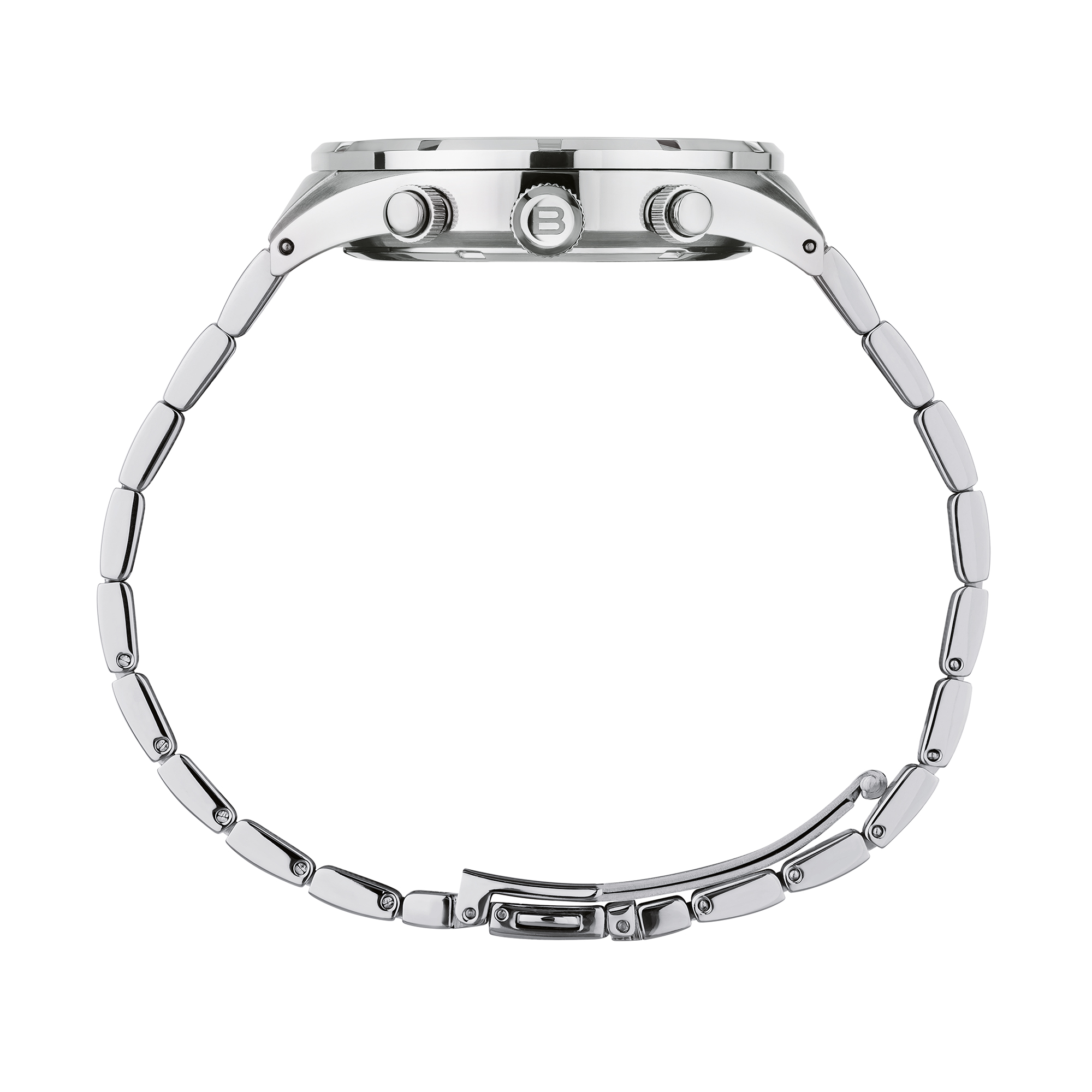 Il cronografo da uomo B 12 H ha un design che lo rende unico. La prima cosa che si nota è la lavorazione della lunetta in acciaio, che presenta una finitura satinata interrotta da 12 intagli lucidi. Una finezza estetica che trova corrispondenza anche all'interno del quadrante, caratterizzato da grossi indici applicati con trattamento luminous. L'accostamento di acciaio lucido e satinato è riproposto anche per le maglie dell'elegante bracciale. Audace e di tendenza, il quadrante verde si distingue per la finitura sunray che ne esalta la luminosità.