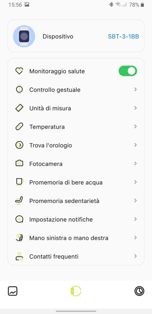 Lo smartwatch SBT-3 oltre a monitorare 15 sport tra cui: corsa, ciclismo, scalata, yoga, tennis, fitness… e ha innumerevoli altre funzioni: chiamata bluetooth, notifica di chiamata e di messaggi, controllo scatto foto, meteo, pedometro, anti smarrimento, controllo musica, calorie, frequenza cardiaca, relax, monitoraggio ossigeno nel sangue, ciclo mestruale, monitoraggio del sonno. Lo smartwatch viene venduto con due diversi cinturini, uno in morbido silicone e uno in acciaio con maglia mesh, facilmente intercambiabili e abbinabili alla cassa rettangolare in ABS 37,8 x 44,5 mm.